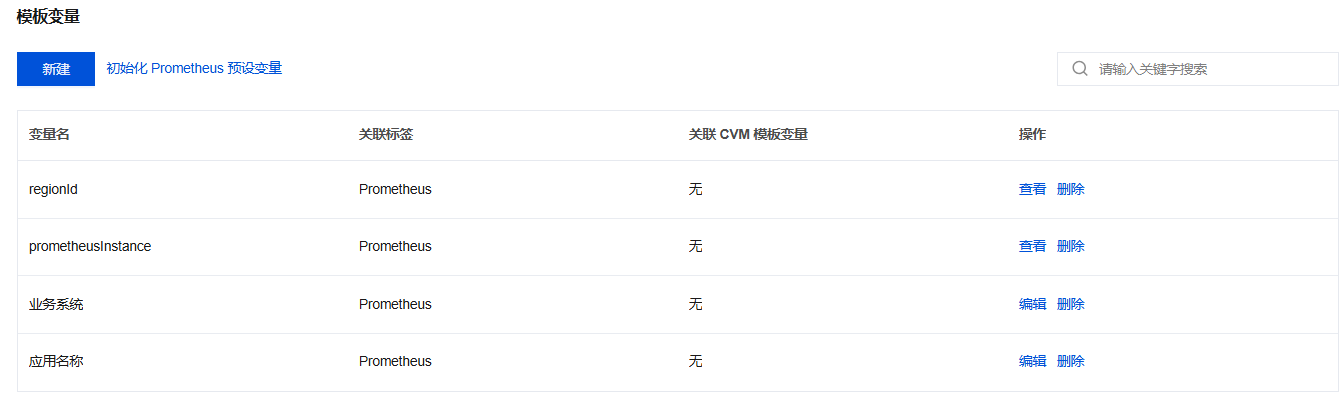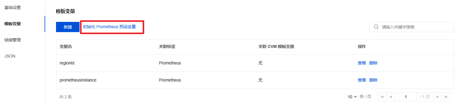 3. 单击初始化 Prometheus 预设变量,系统将自动生成地域和 Prometheus 实例两个模板变量。