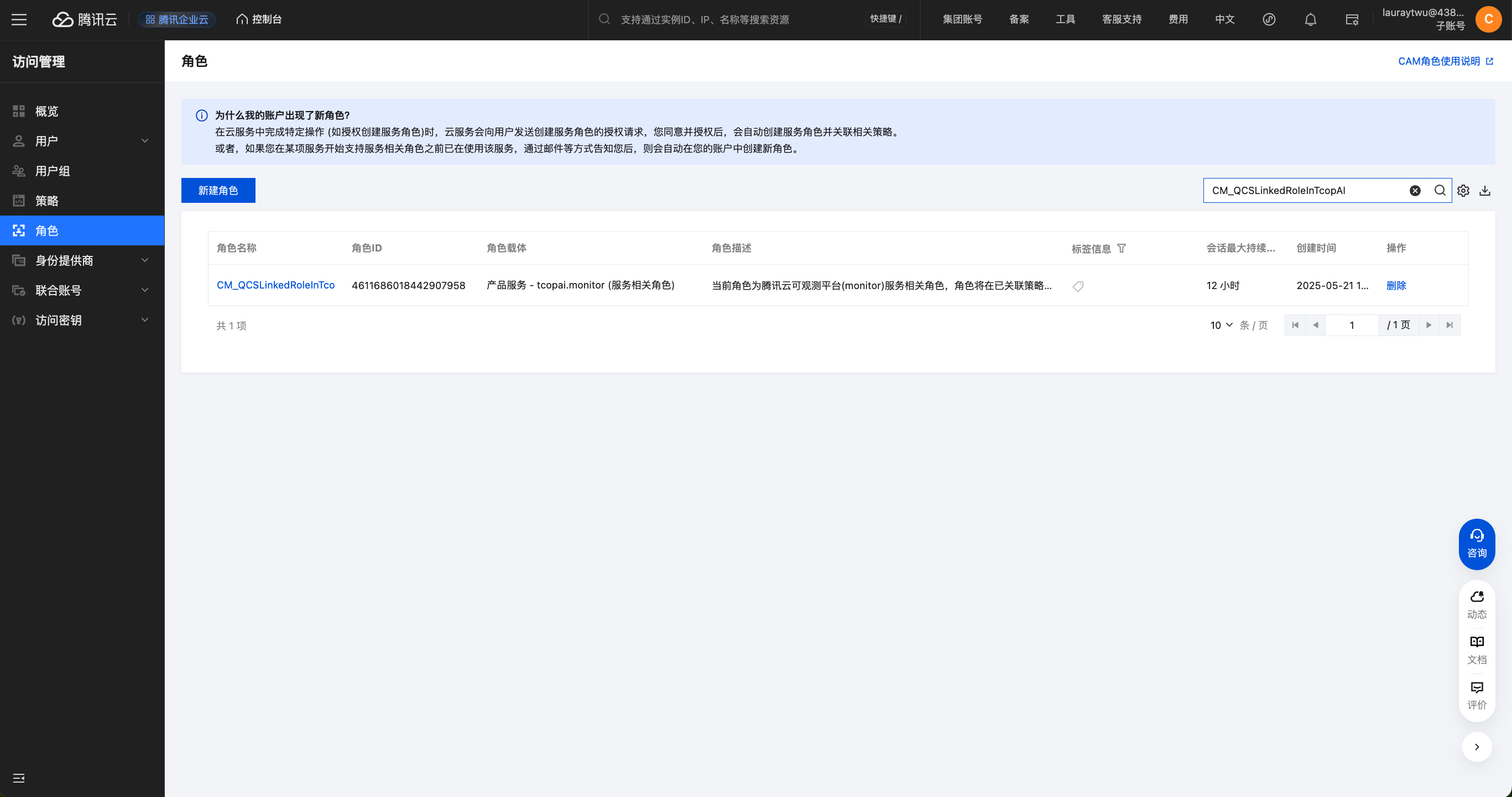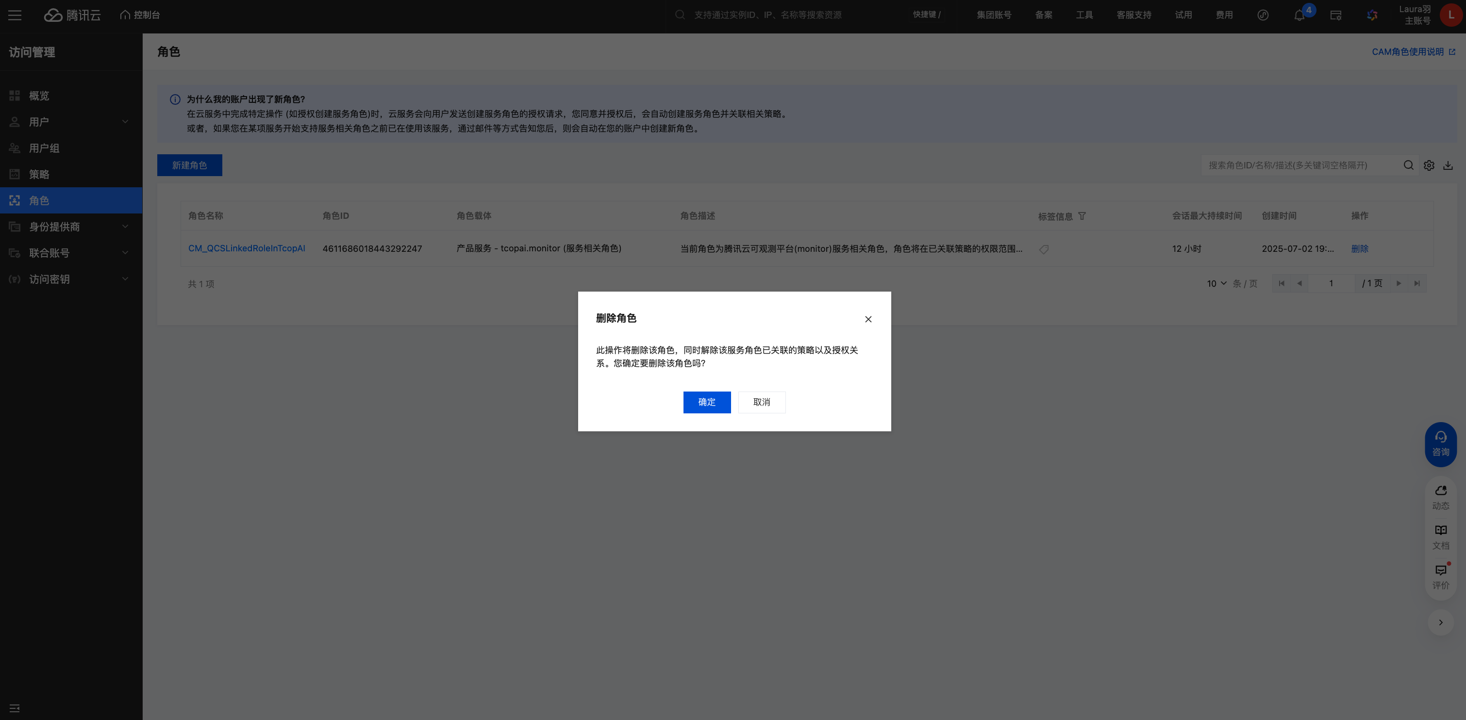 如果您需要彻底关闭 TCOP AI 功能,只需删除其依赖的服务角色即可。