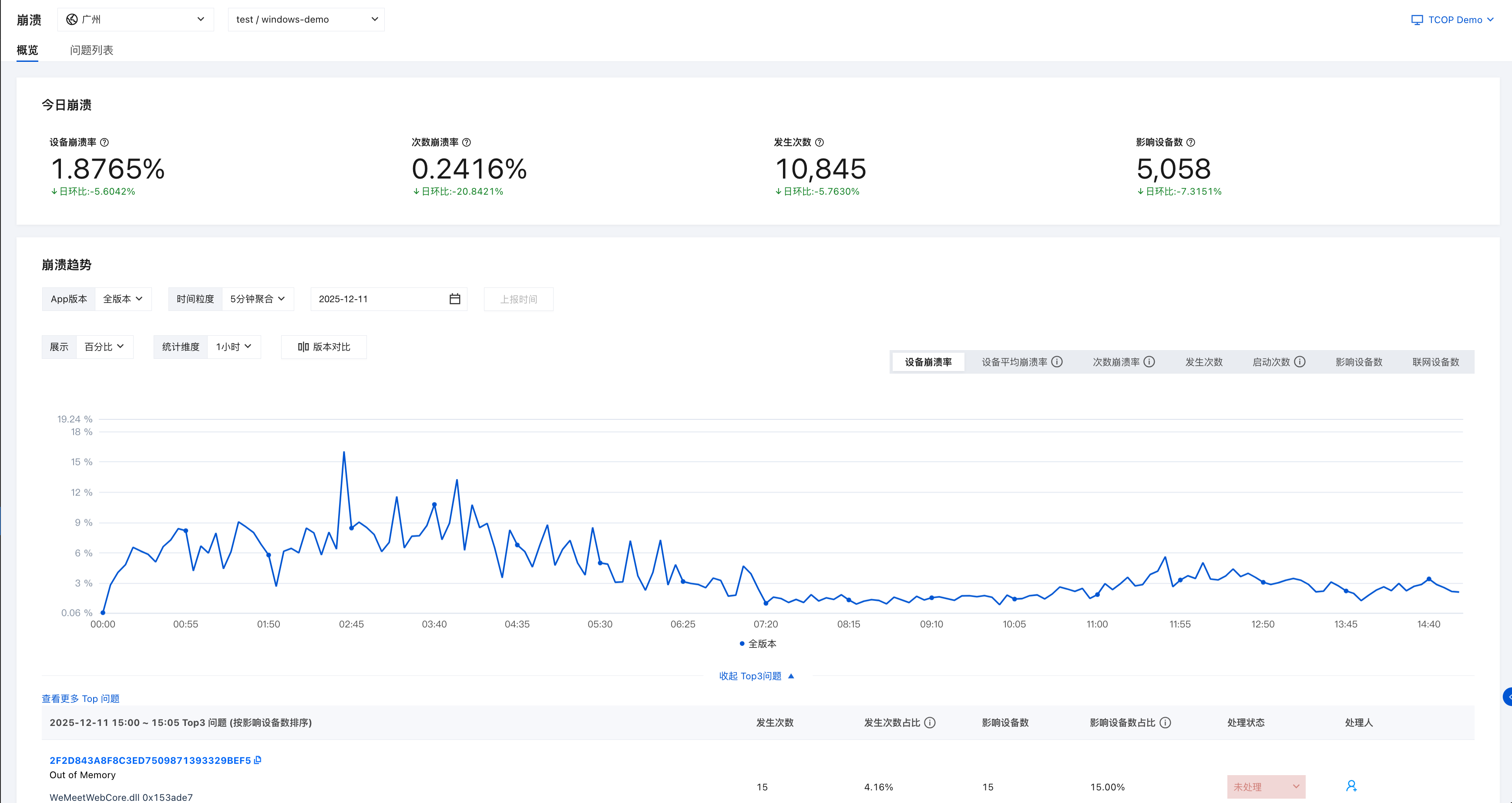 3. 您可以在 崩溃 页面检查上报是否成功。