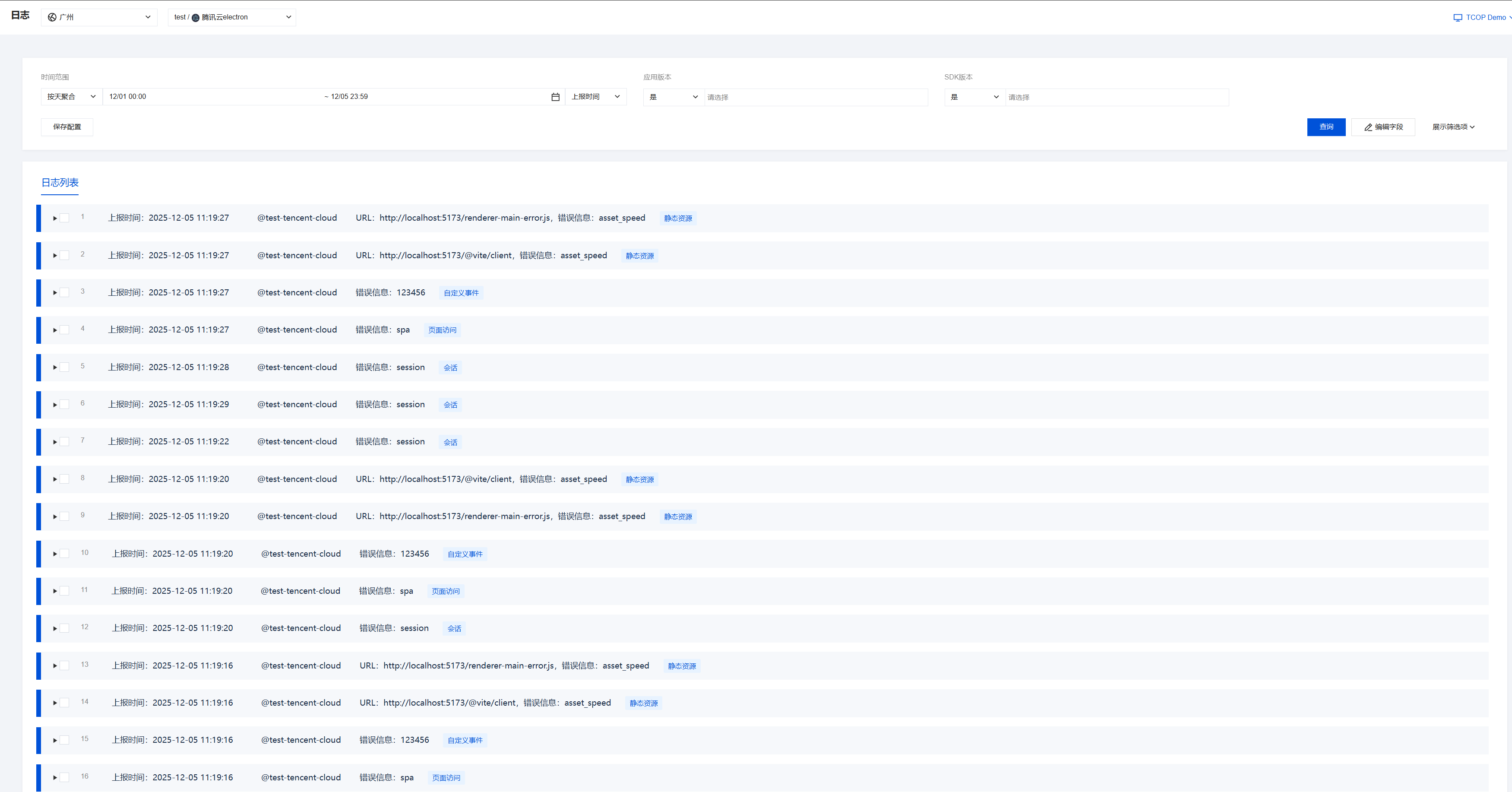 自定义事件上报,默认日志类型 {level: "info", type: "custom_event"}。