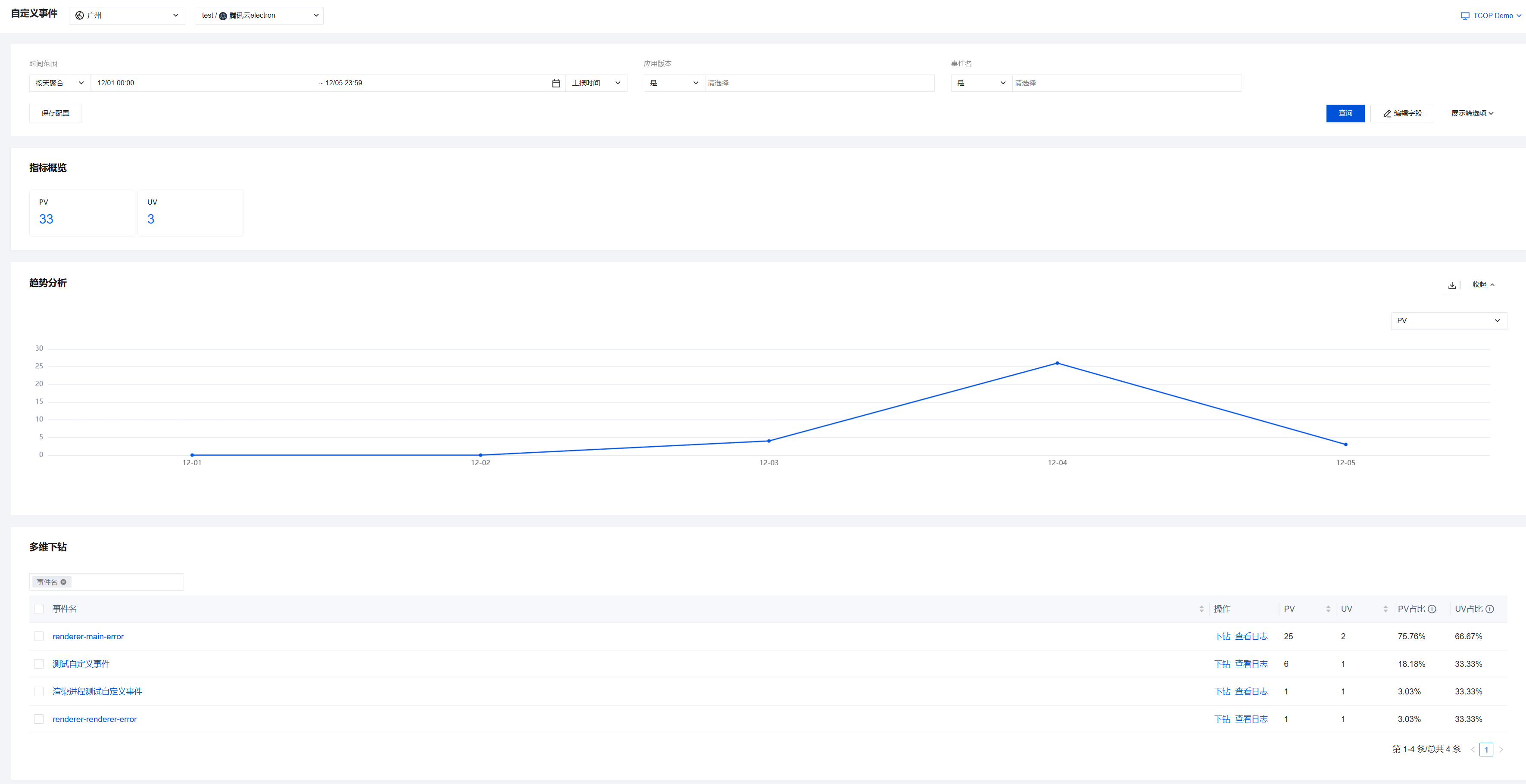该方法可用来上报自定义事件,平台将会自动统计上报事件的各项指标,例如:PV、平台分布等。