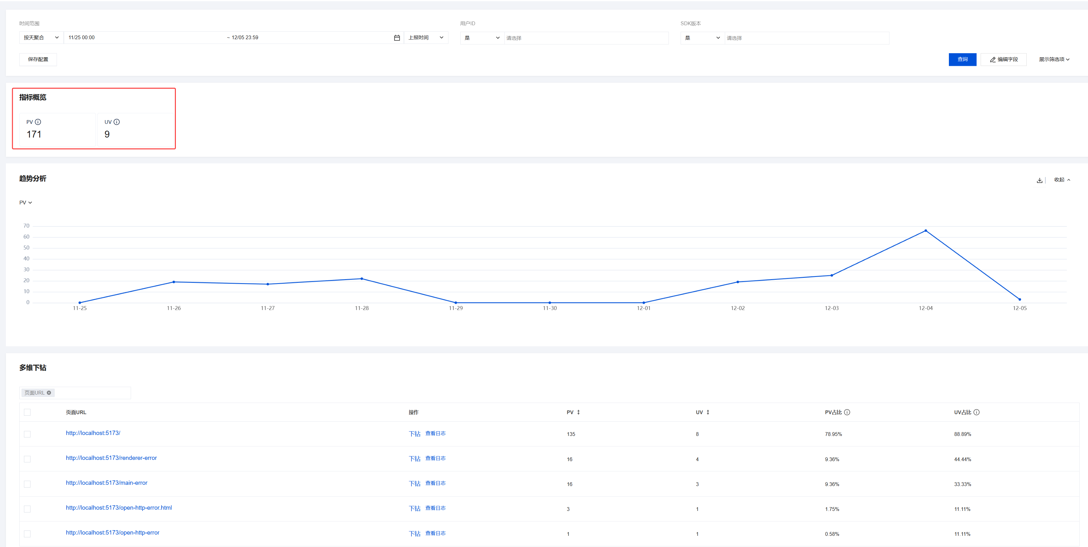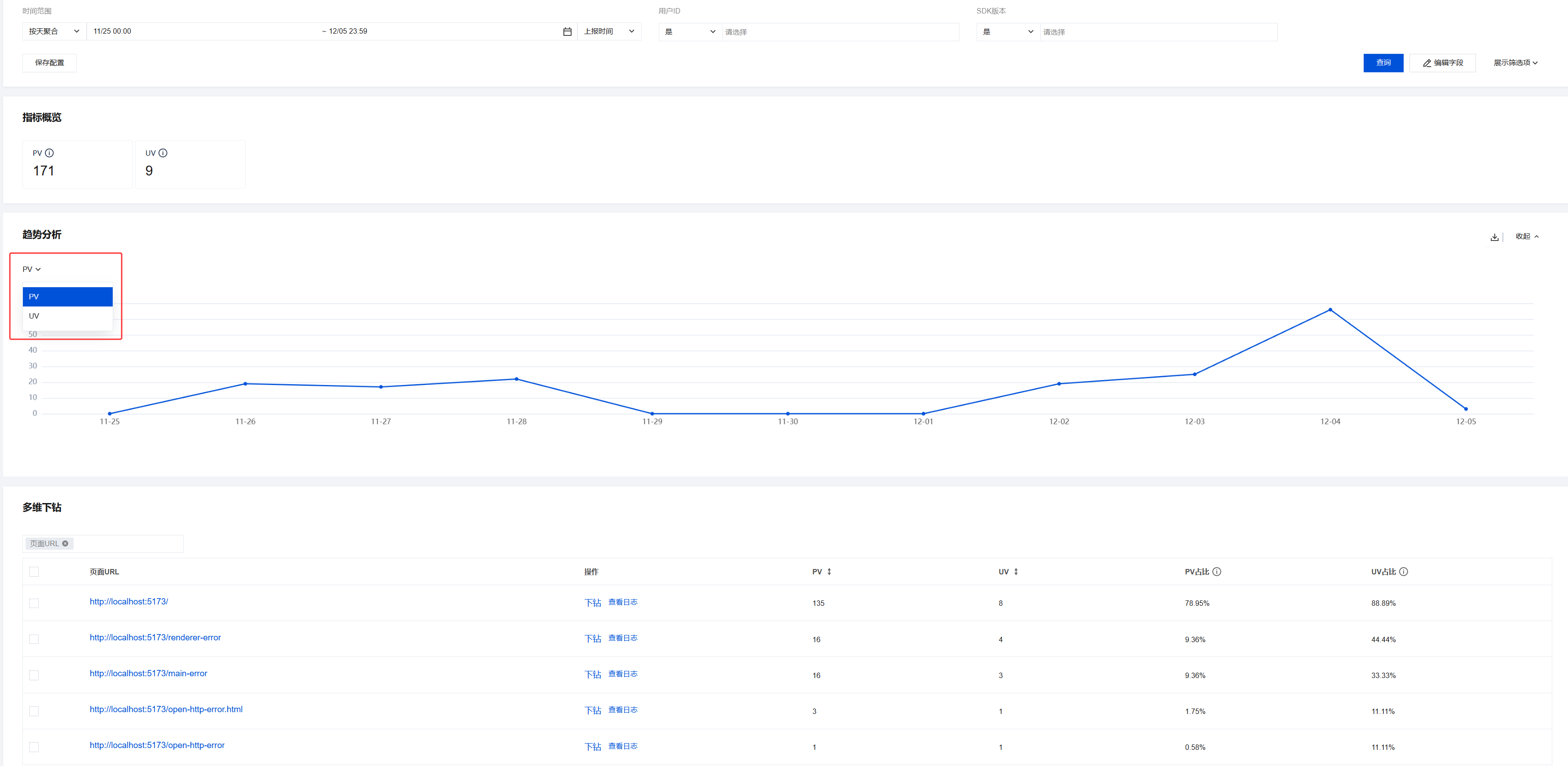 页面访问的多维下钻与 API 监控的多维下钻类似,详情可参见