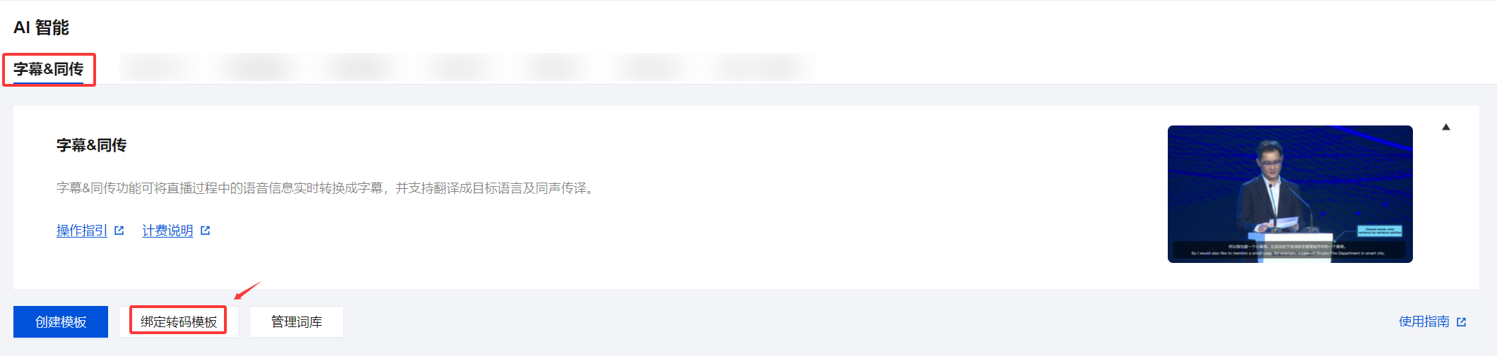绑定转码模板后,会同步开启转码模板配置中的字幕功能。
