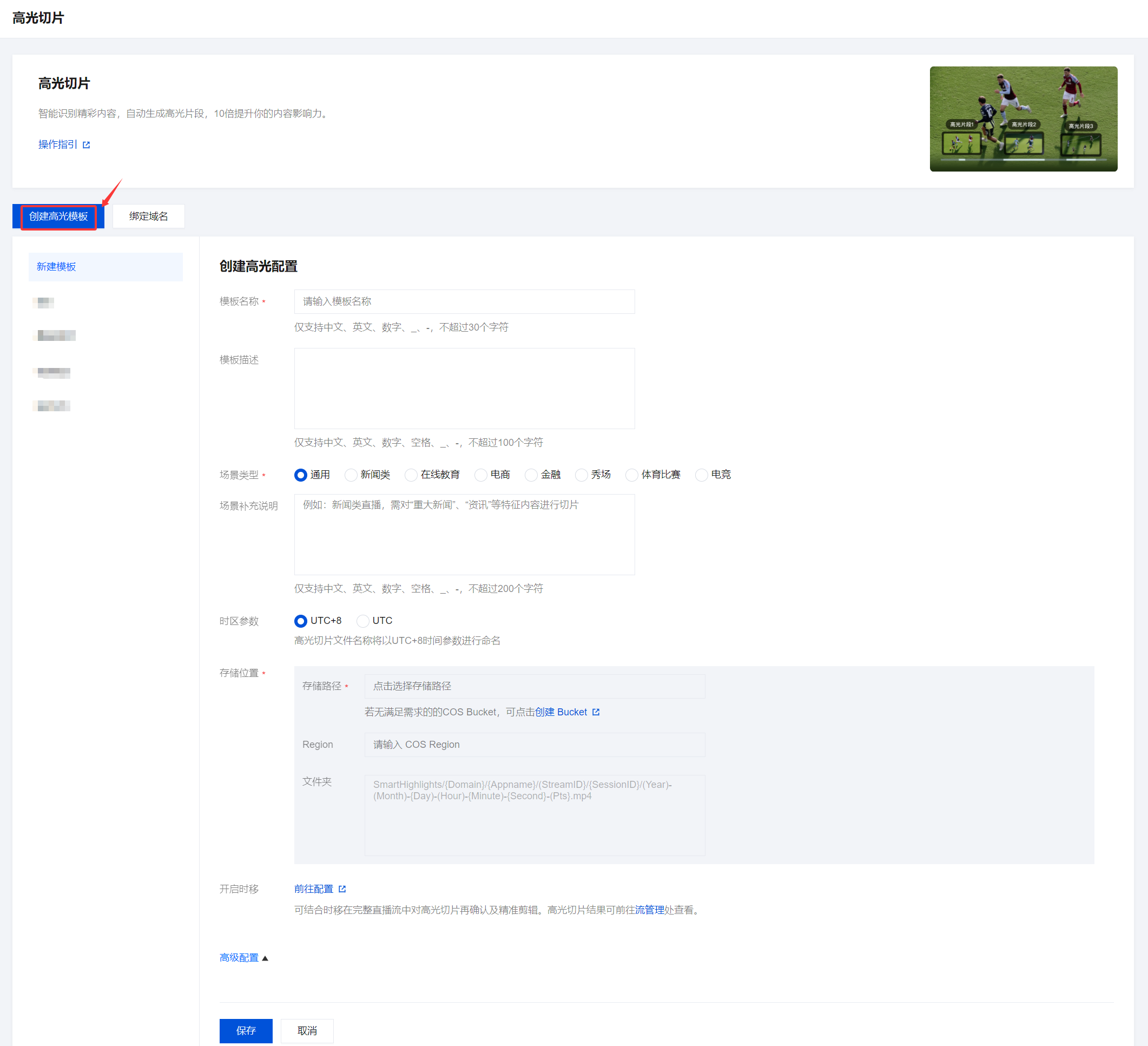 模板创建成功后,可与推流域名进行关联。关联成功后5分钟-10分钟生效,关联的域名推流成功即会触发高光切片。