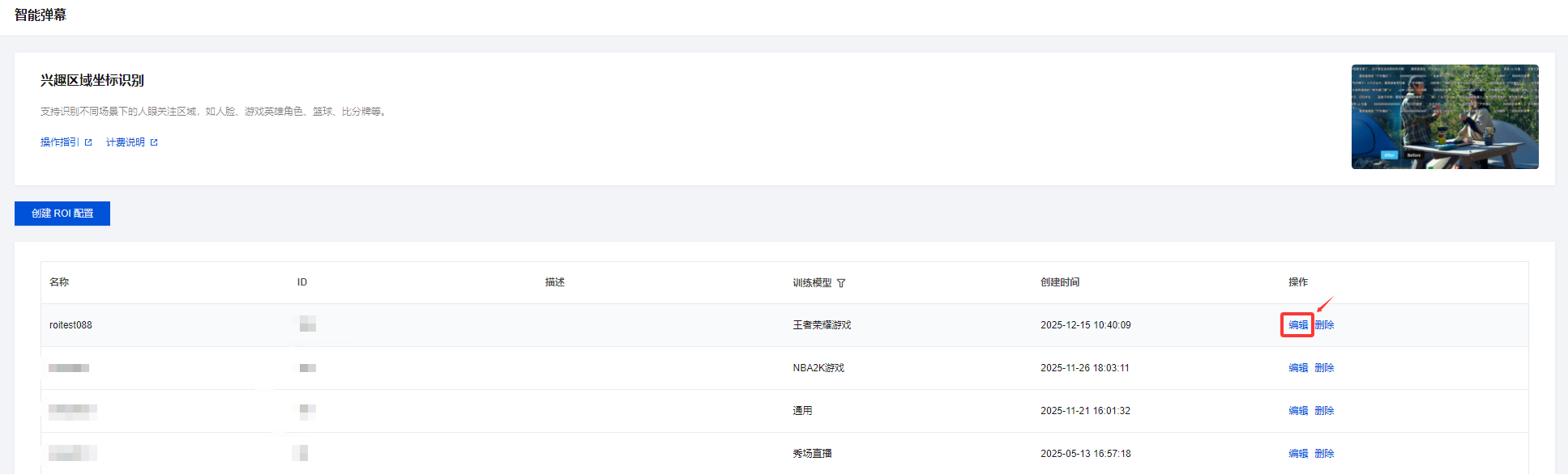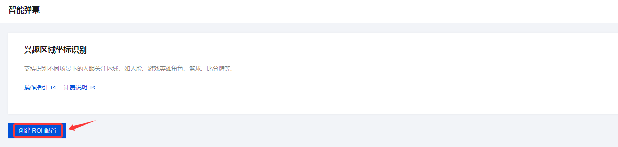 5. 进入智能弹幕管理页面,单击创建 ROI 配置。
