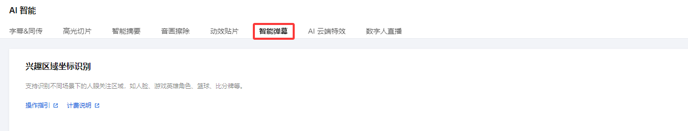 1. 登录 云直播控制台,选择 AI 智能 > 智能弹幕。
