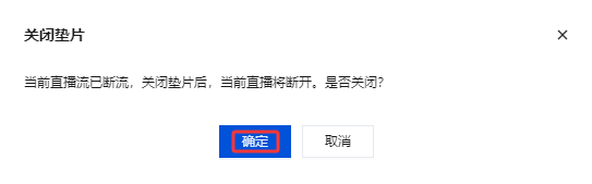 2. 单击确定后,则关闭垫片,直播流将会断开。