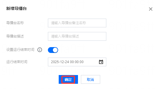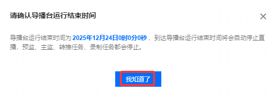 5. 在设置导播台运行结束时间后,系统会弹出提醒窗口,需要再次确认。