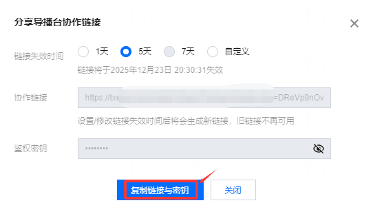 导播台协作链接有效期与分享时设置的失效时间一致。