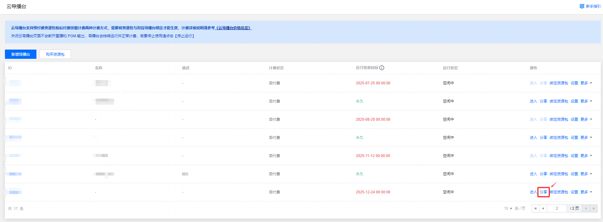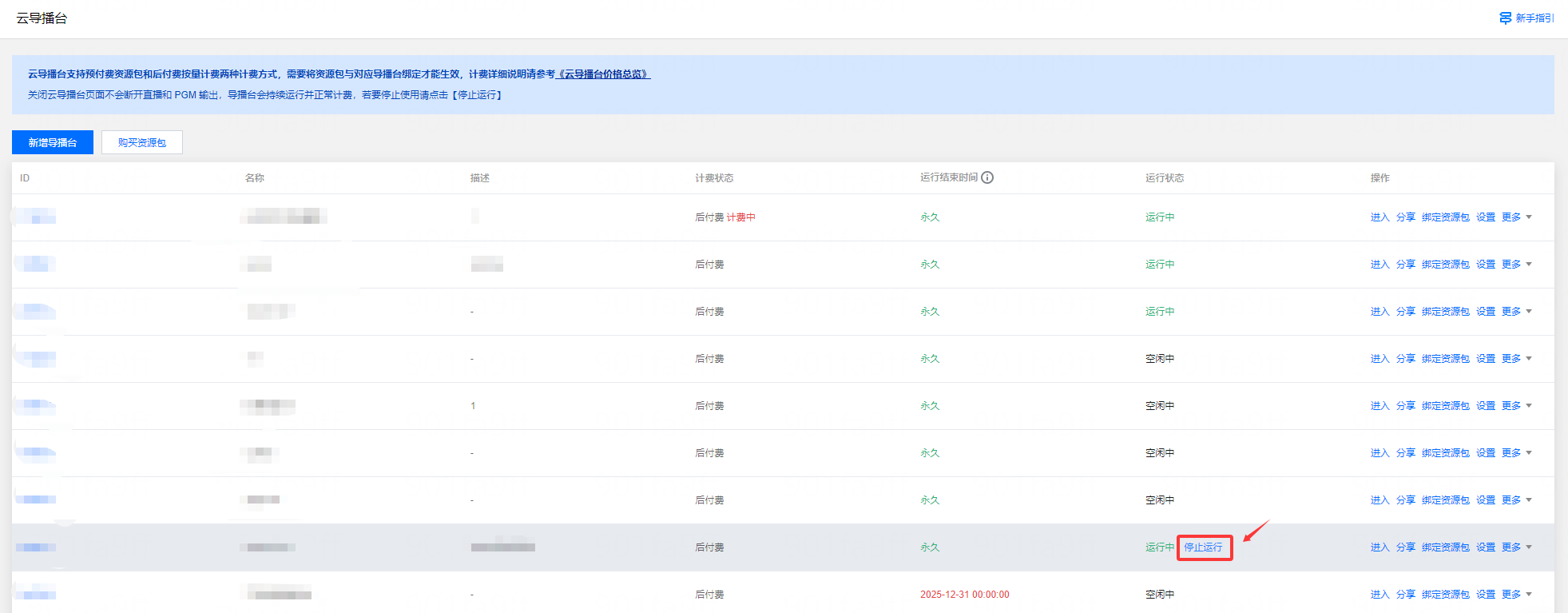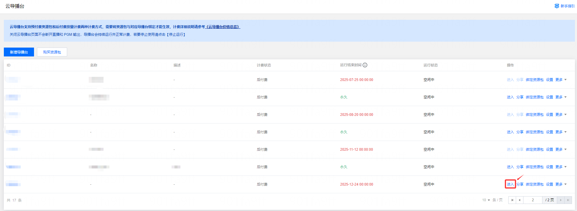 1. 导播台创建成功后,您可通过云导播台列表查看导播台信息。