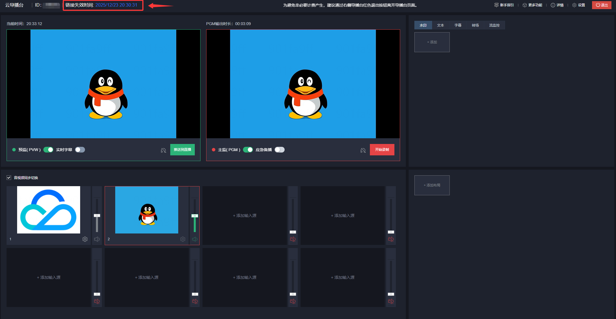 2. 协作者输入密钥登录后,将直接进入导播台界面。您可在界面左上方查看链接失效时间。