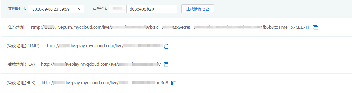 开通直播码的页面还提供了一个地址生成器,用来方便您平时测试URL,因为手算防盗链签名还是很费事的。