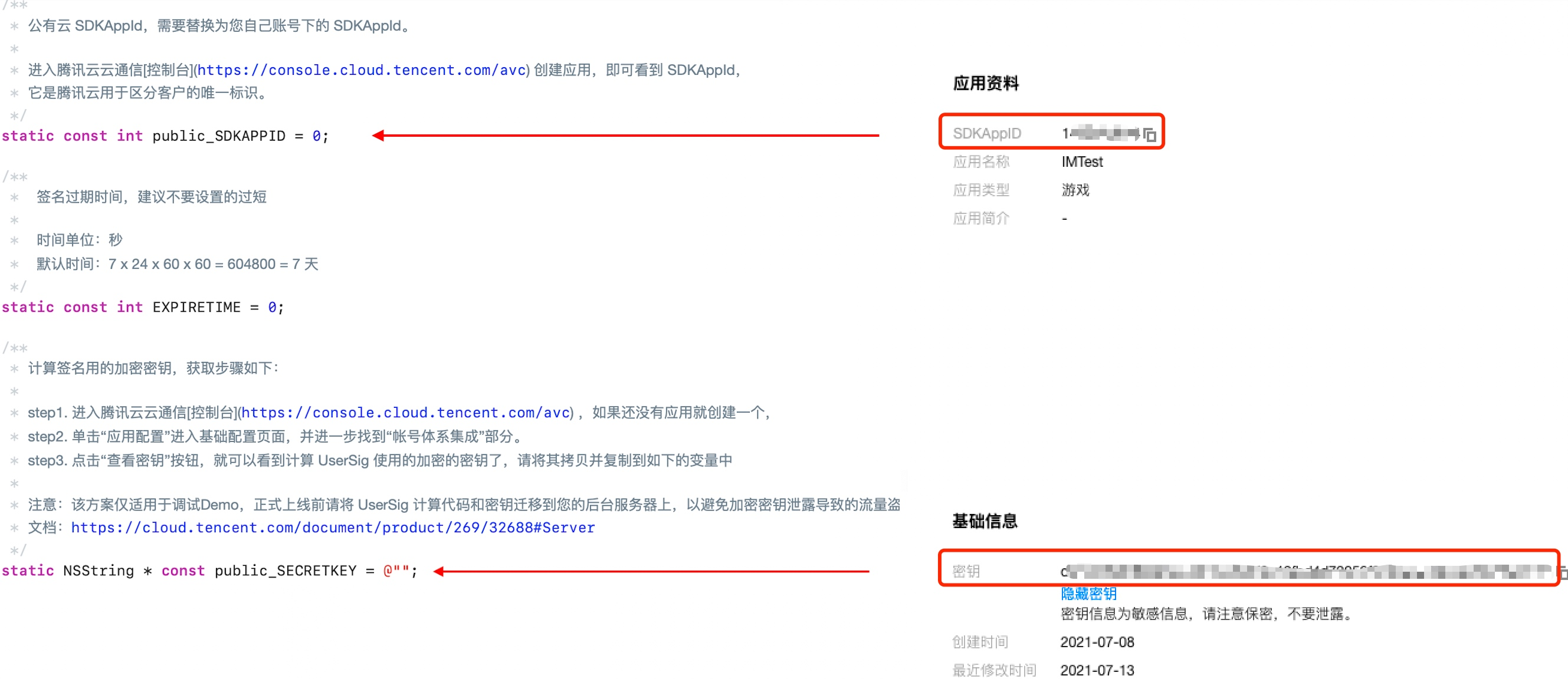 GenerateTestUserSig.h 文件中的相关参数:SDKAPPID:请设置为前文中获取的实际应用 SDKAppID。