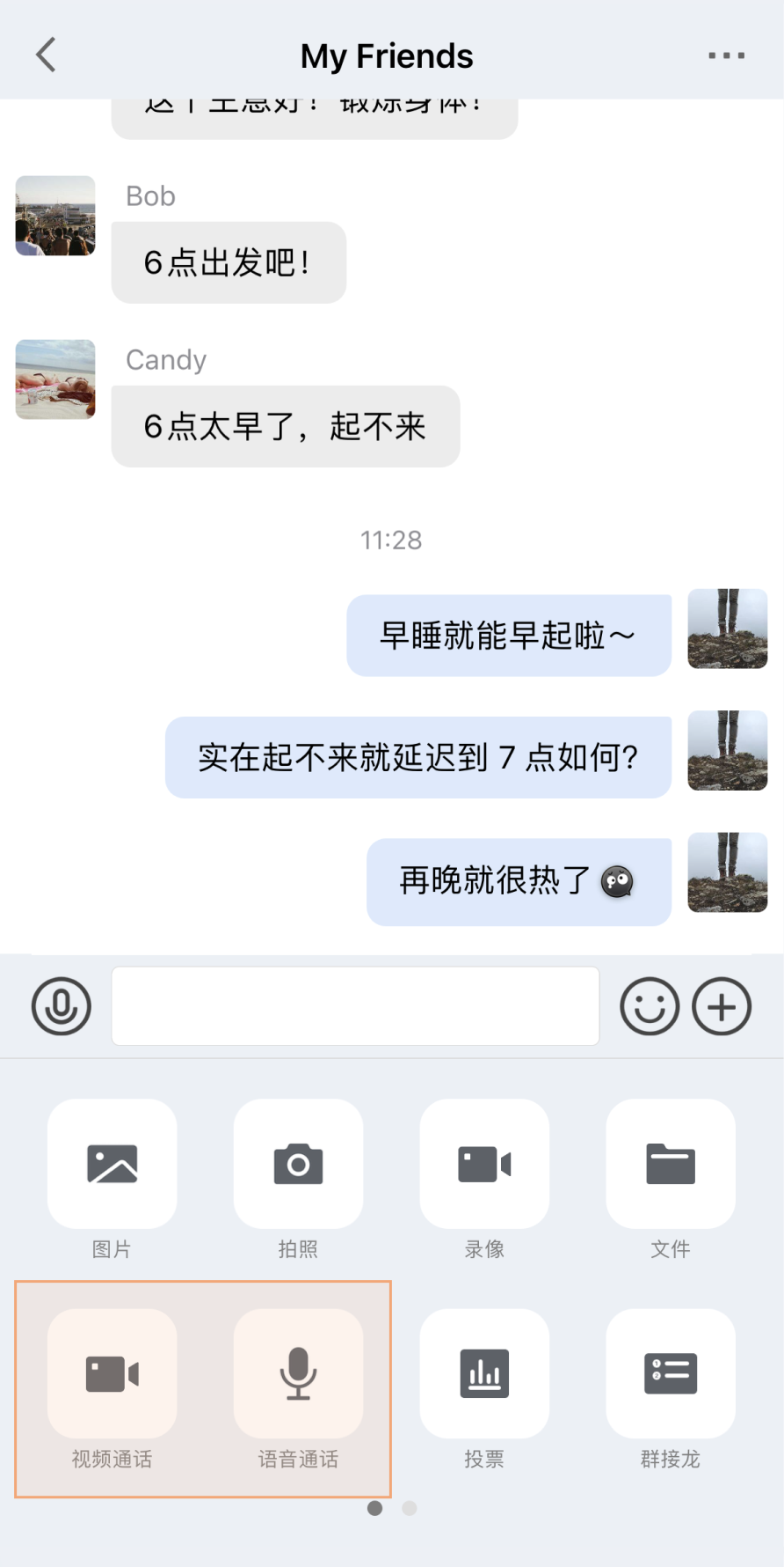 TUICallKit 组件和 TUIChat 组件可自由组合,当集成了 TUICallKit 组件后,TUIChat 会默认开启音视频通话功能,并在聊天页面更多菜单中显示入口。