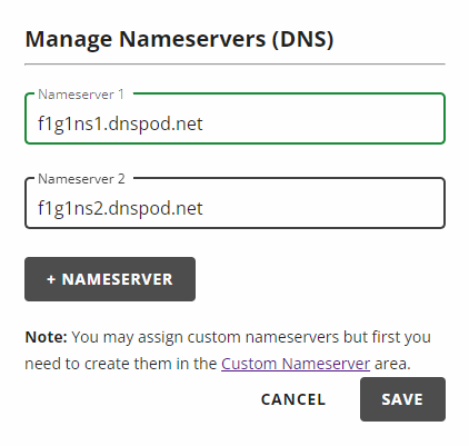 本文档将指导您 Domain 注册的域名配置 DNS 服务器为 DNSPod 。