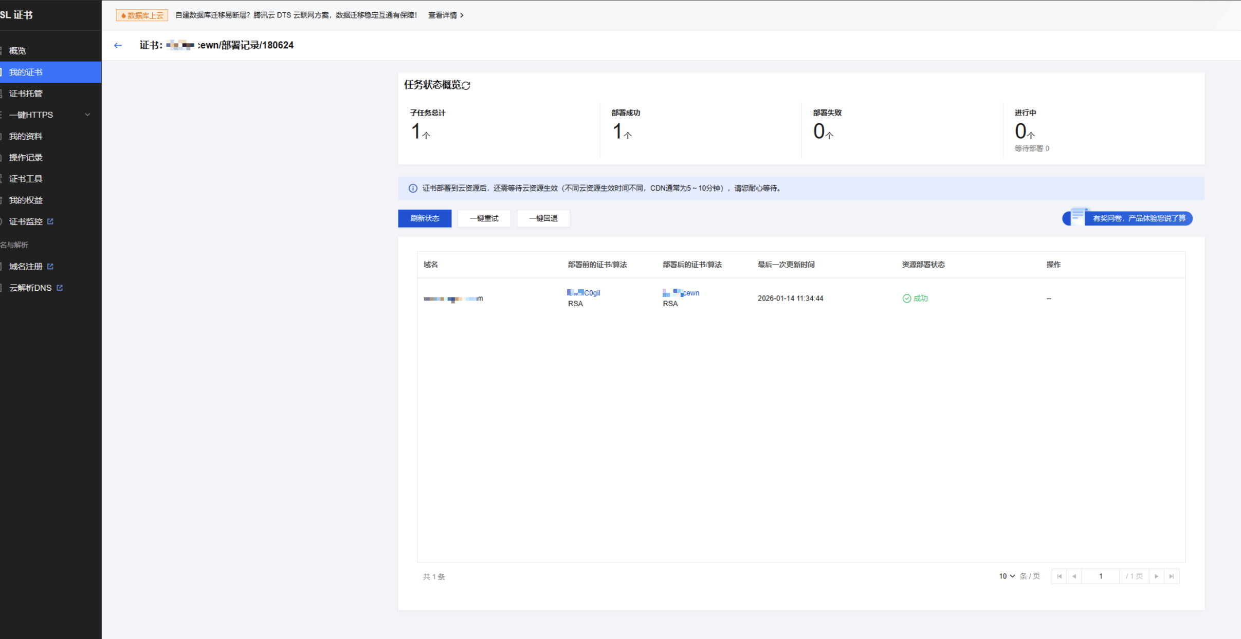 部署/更新 SSL 托管证书至 EdgeOne 域名