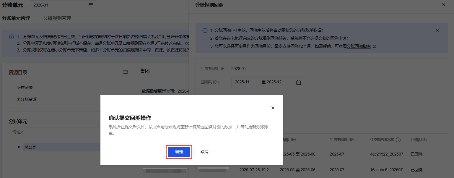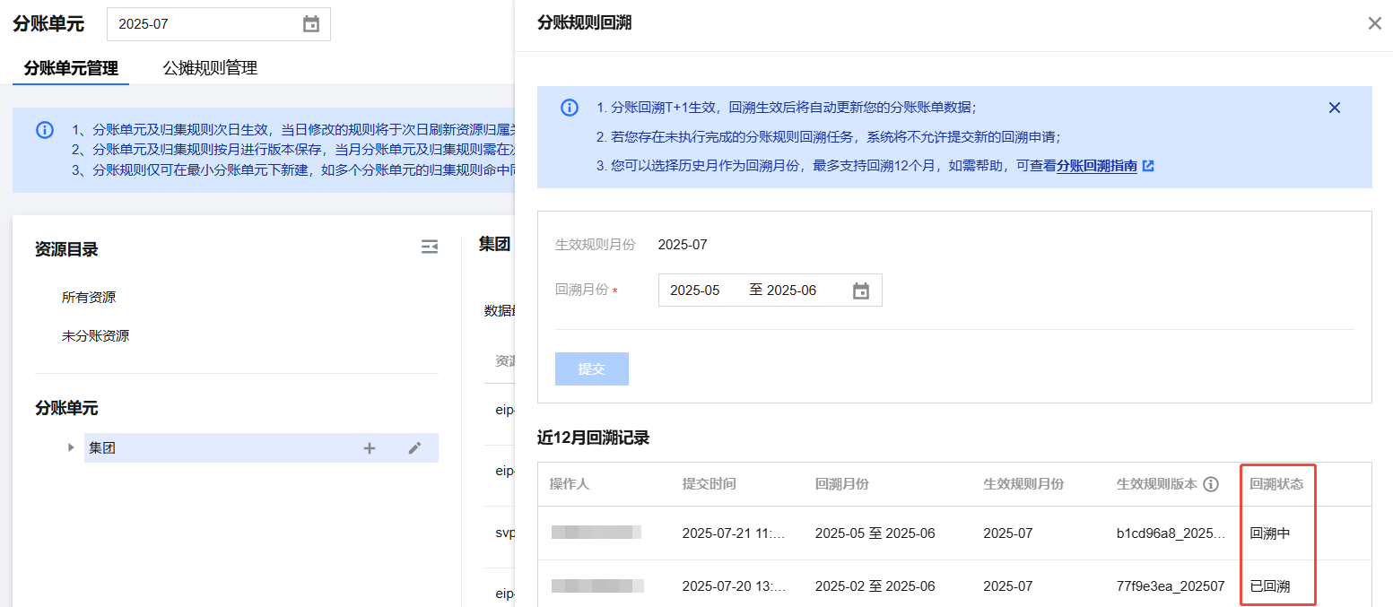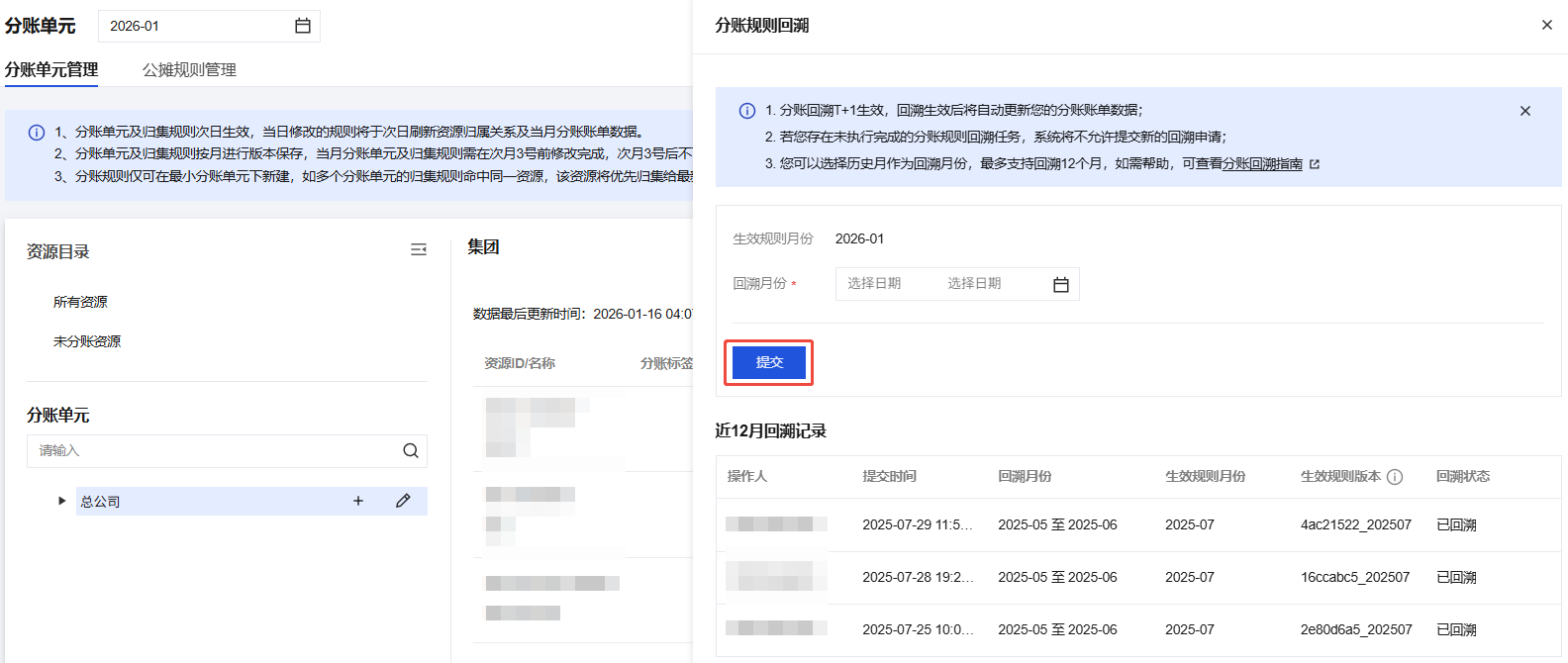 回溯月份最多支持12个月,且最早只支持回溯到分账单元开通月。