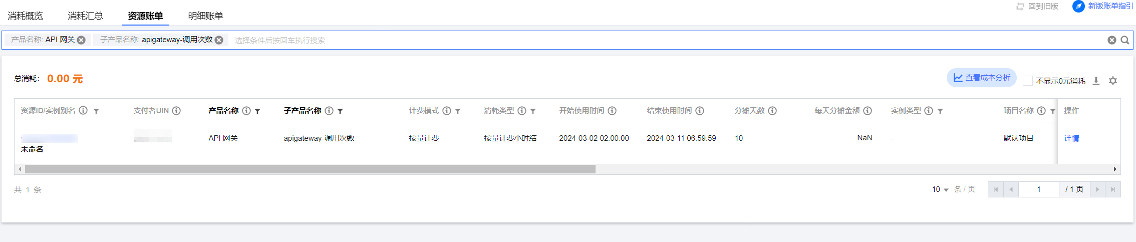 资源账单