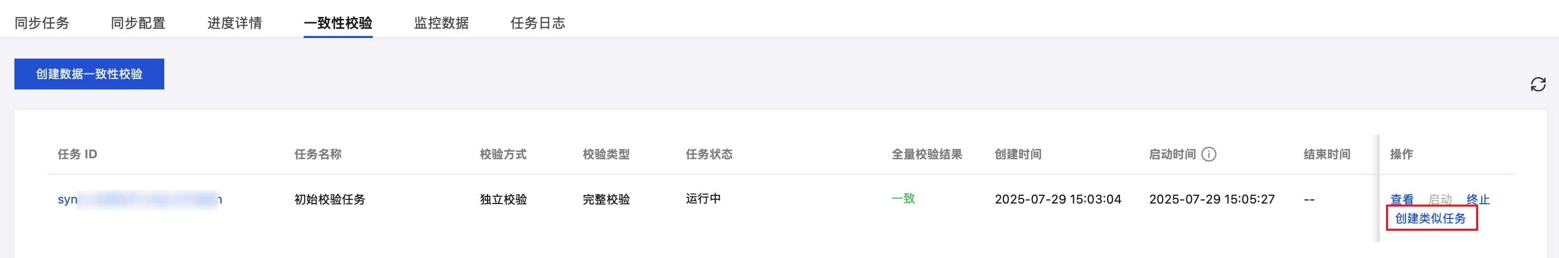 如果已存在一致性校验任务,可以单击操作列的创建类似任务,并支持配置相关参数。