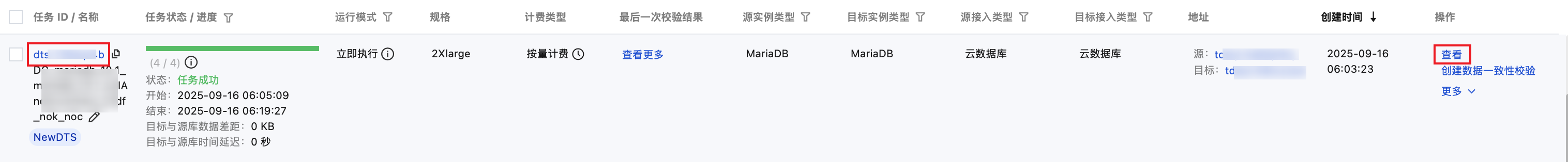 方式二:在数据迁移页面,选择指定的迁移任务,在操作列单击查看。