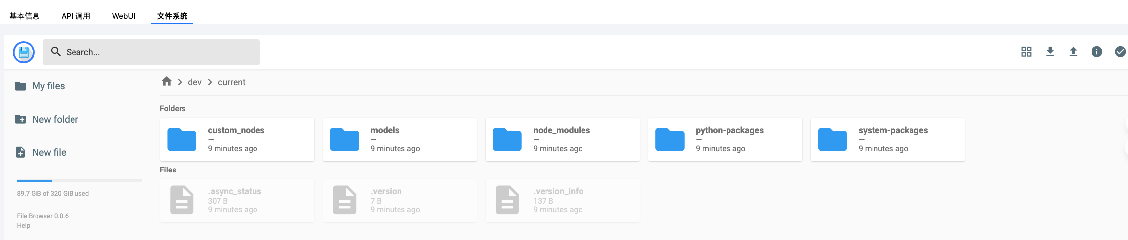 在 ComfyUI 界面的文件系统页签,上传目标模型到 models/ 目录。再或者登录到应用对应的云函数的实例安装到对应环境的 models/ 目录。
