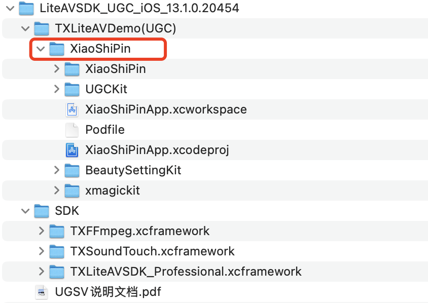bitcode,将 Enable Bitcode 设置为 NO。1. 在终端进入到 TXLiteAVDemo(UGC)/XiaoShiPin 目录下。