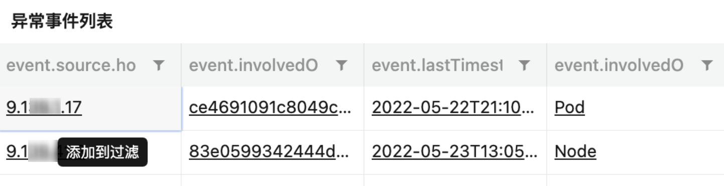配置后,点击对应集群字段。跳转打开异常事件聚合检索分析仪表盘,且已过滤出该集群的指标。