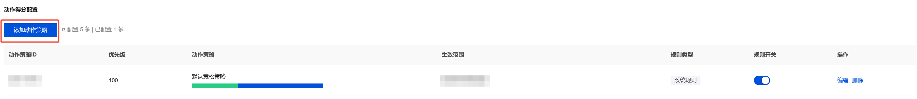 4. 在场景配置页面底部,单击添加动作策略。