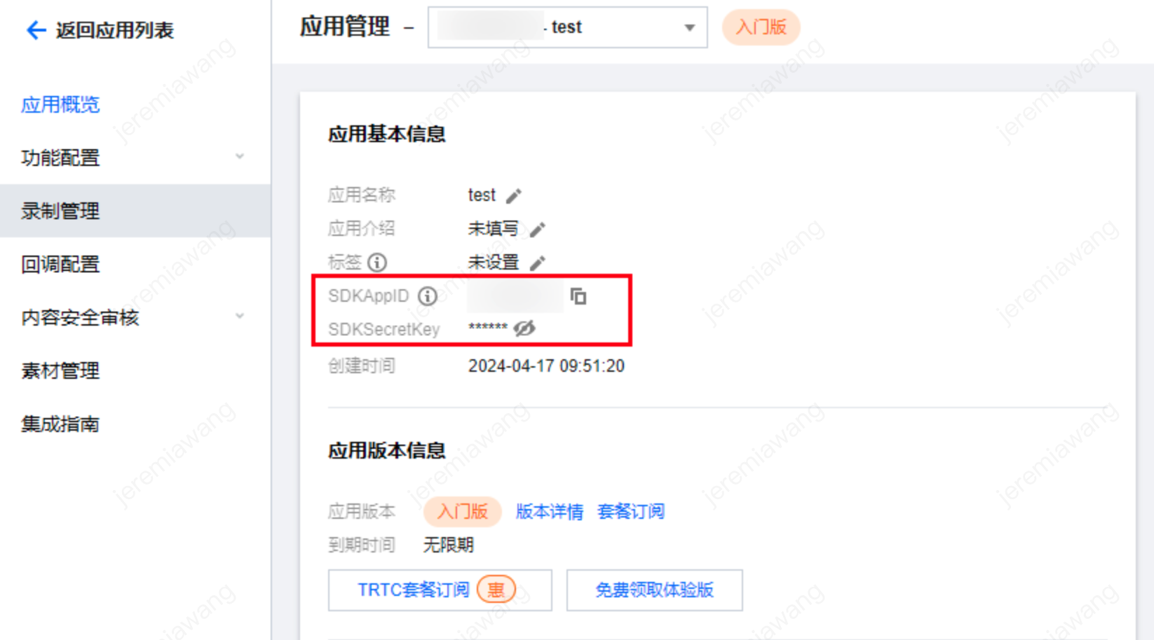 1. 激活 TUIRoomKit 服务,获取 SDKAppIDSDKSecretKey
