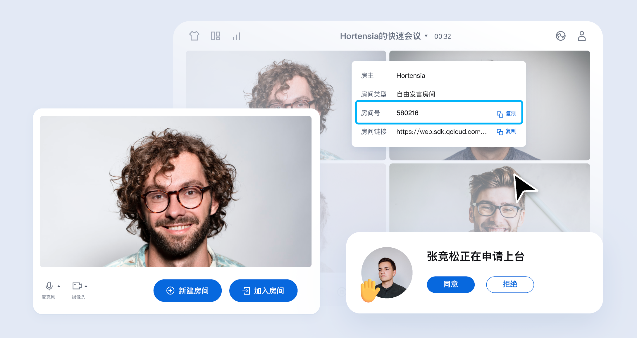 参与者可以通过填写对应的 RoomId,来加入由会议主持人创建的会议。