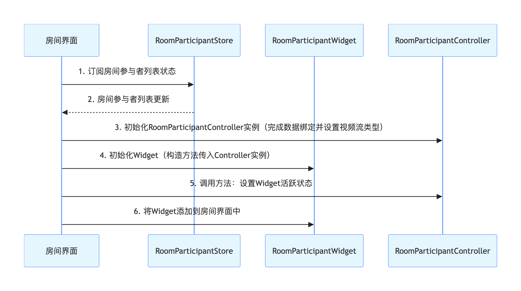RoomParticipantController | RoomParticipantWidget的控制器,用于绑定和更新参与者信息 / 更新视频流类型 / 设置活跃状态等。 |