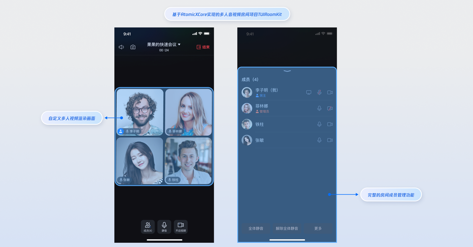 AtomicXCore 的完整集成指南,帮助开发者快速实现多人音视频房间功能。SDK 采用纯 API 架构设计,开发者可完全自定义 UI 界面,专注于业务逻辑和用户体验的实现。