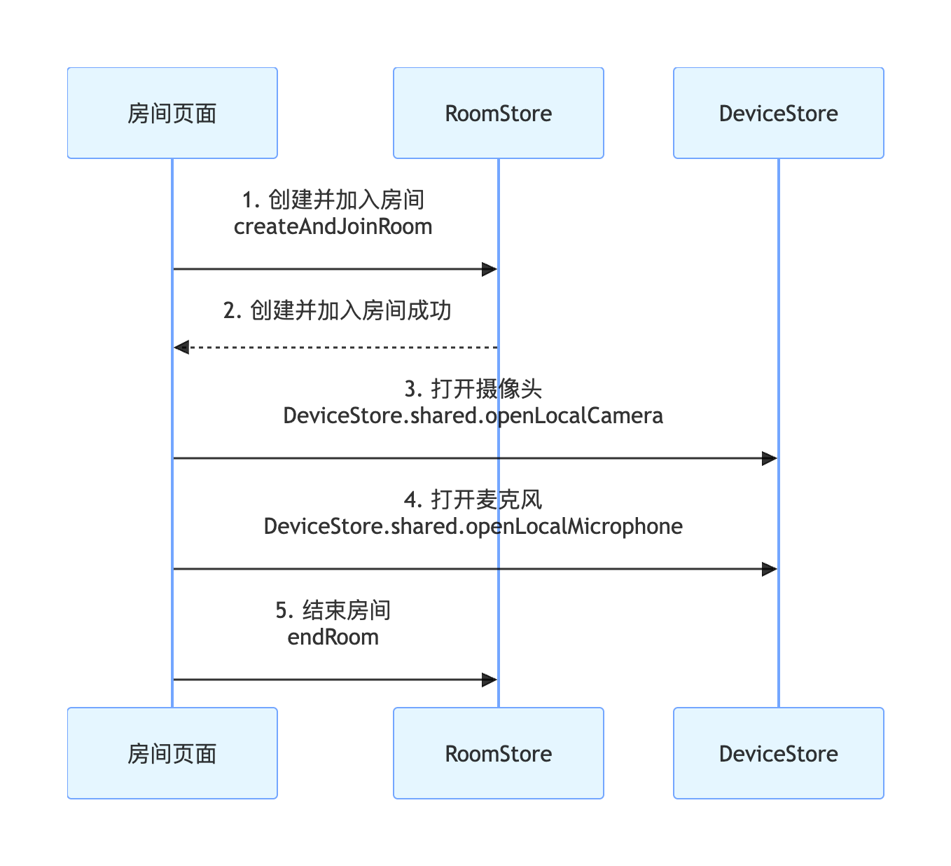 RoomStore的createAndJoinRoom接口执行核心操作。示例代码: