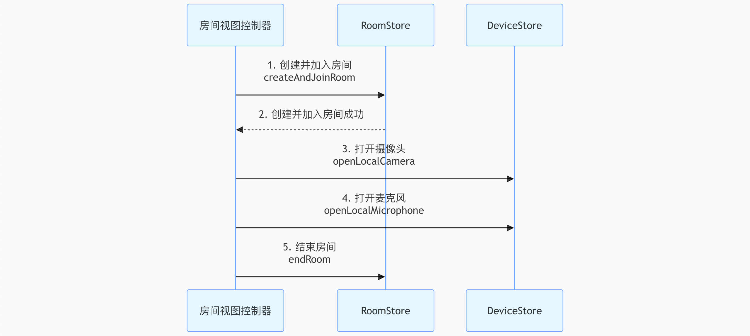 RoomStore的createAndJoinRoom接口执行核心操作。示例代码: