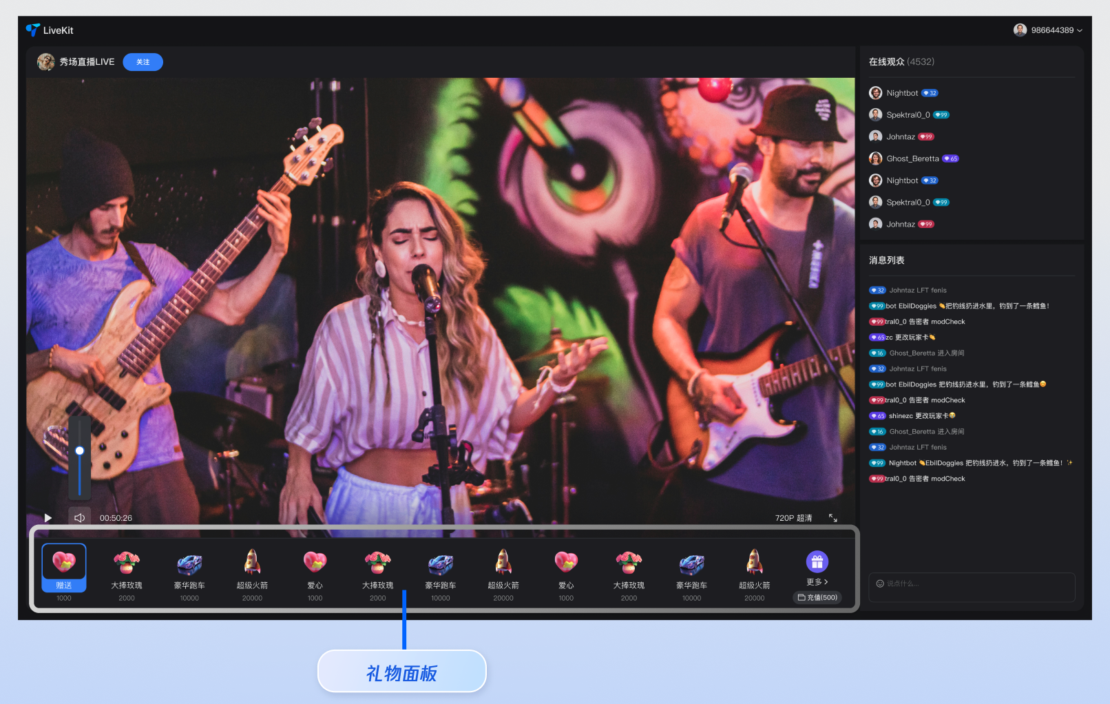 自定义礼物配置:通过服务端 API 上传您自己的礼物图标、动画文件,并设置价格。