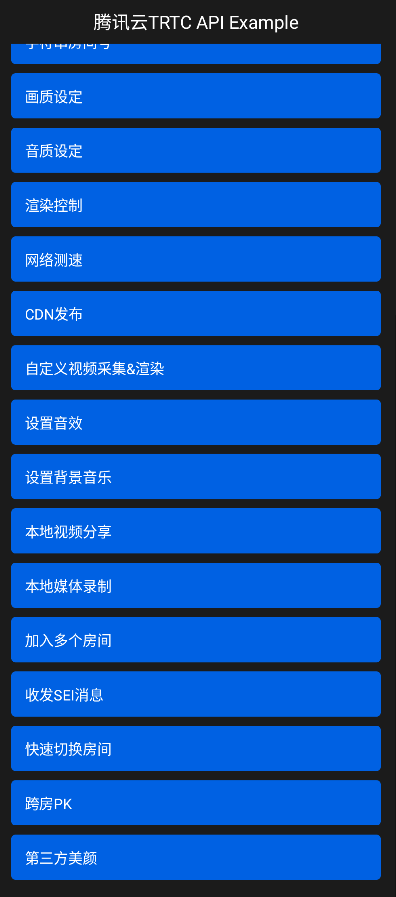 4. 点击运行按钮开始编译。编译成功后,您的设备上会自动安装好腾讯云 TRTC-API-Example App。