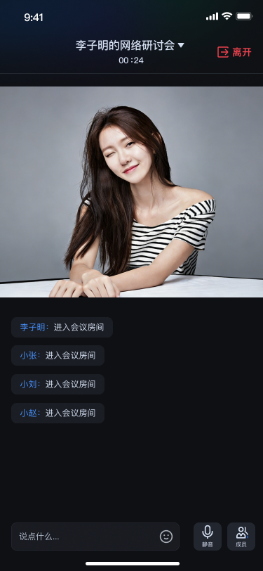 RoomMainWidget代码后,开发者将得到一个完整的多人音视频页面,内部包含成员管理,音视频设备控制,房间信息展示等功能,这是 TUIRoomKit 组件的核心。标准房间 | 大型研讨会房间 |