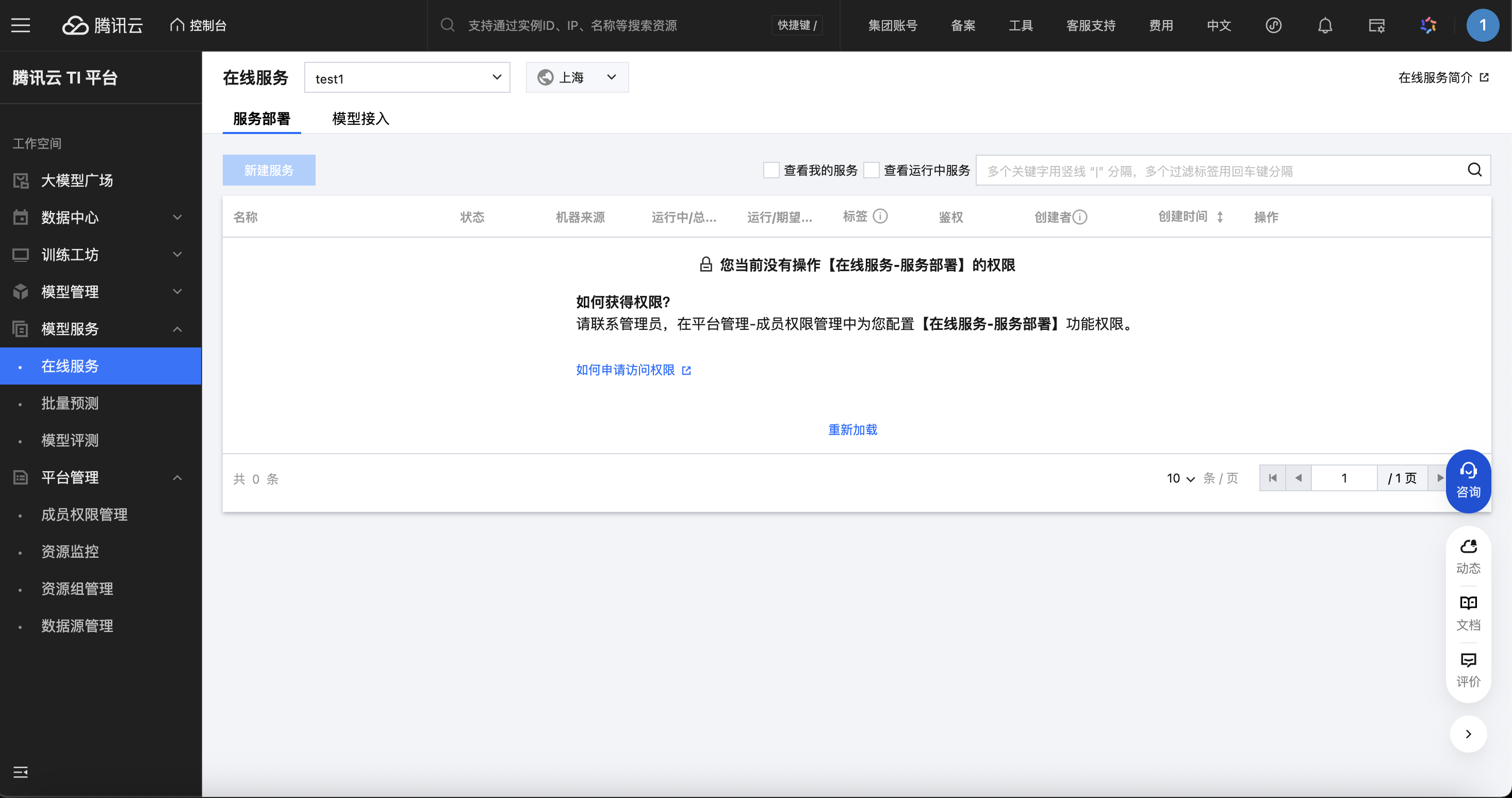 模型服务 | 在线服务 | 服务部署 | 可编辑他人数据 | 可查看他人数据 |