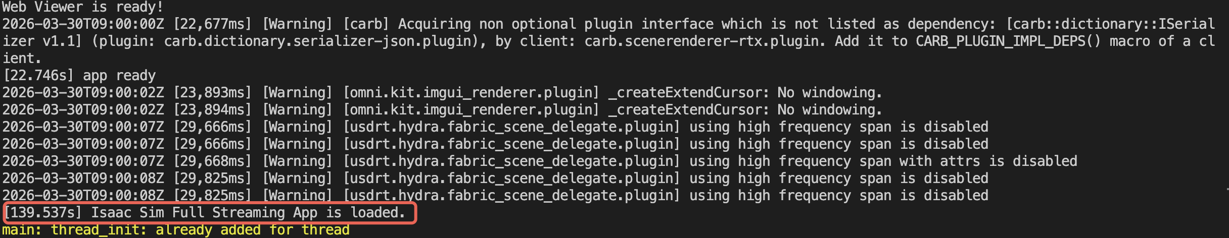2. 等待 Isaac Sim 启动完成。首次启动可能需要 3-5 分钟,请耐心等待。