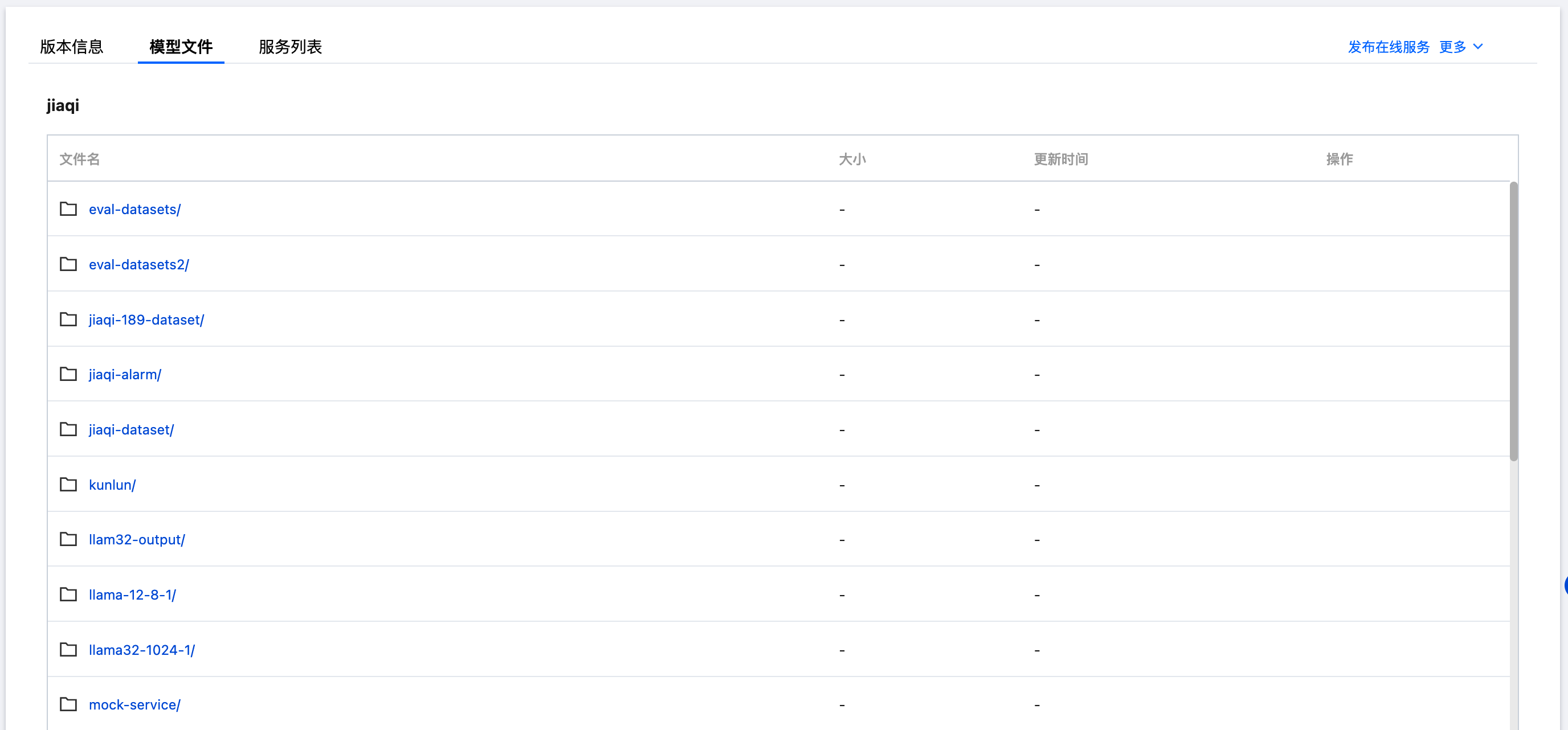 服务列表可在此查看基于此模型任何版本,创建的在线服务。