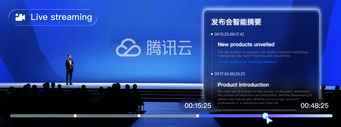 云直播(Cloud Streaming Services,CSS)为您提供极速、稳定、专业的云端直播服务,支持超低延时、千万级并发与超高清视频直播,保障大规模实时观看体验。基于自研流媒体内核与 AI 大模型,云直播具备转码、增强、字幕、同传、质检评测等功能,可提升直播质量与互动体验,满足多样化的业务需求,为您打造一站式音视频直播解决方案。