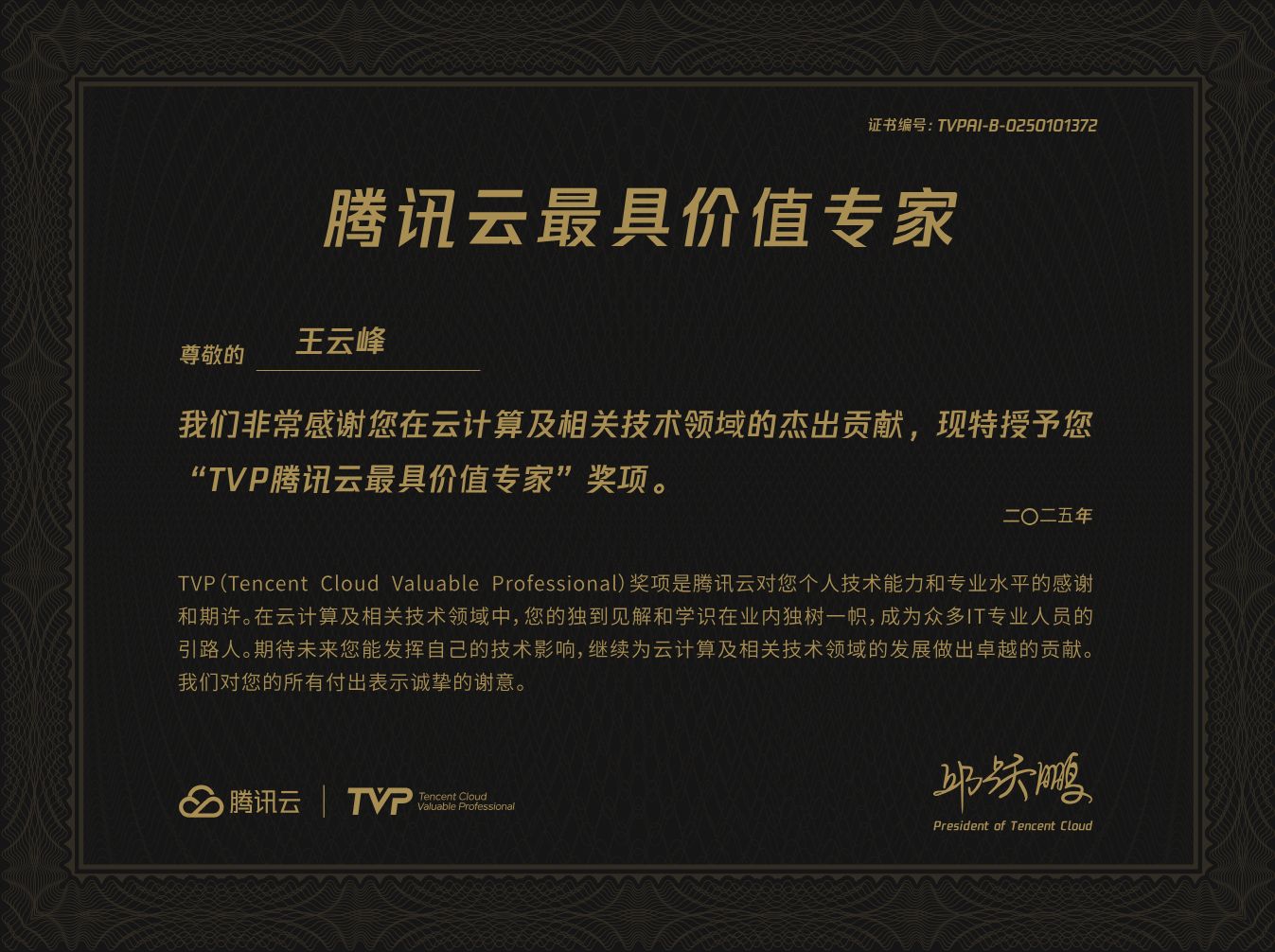 TVP技术专家荣誉